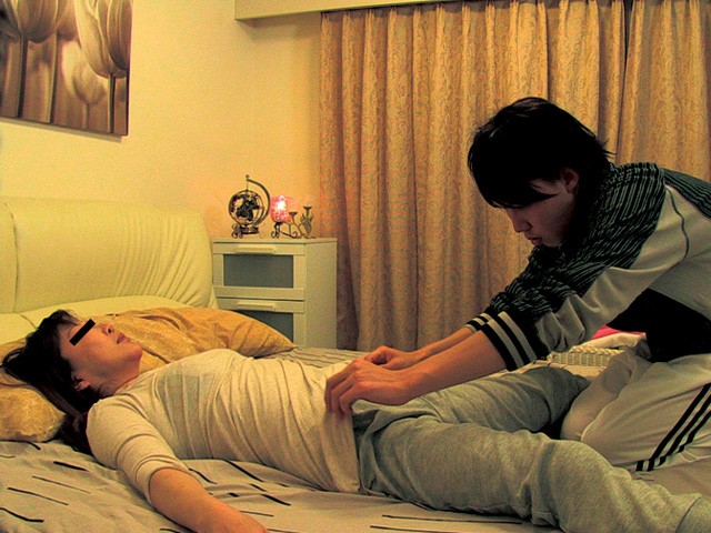 叔母にマッサージの練習相手を頼む。徐々に胸に触れる回数を増やし、股関節のマッサージと言いながら胸と外性器周辺に集中する。叔母が信用していることにつけ込み、全裸にバスタオル一枚になってもらって続ける。さらにオイルマッサージを始めると言い、嫌がる叔母にお風呂でのオナニー盗撮ビデオを見せて従わせる。乳房をマッサージしながら乳首に触れ、股間にオイルを振って外性器を弄りまわす。最後に甥はパンツを脱いで陰茎を取り出し、叔母の乳房や股間に擦り付けて遊んでいた。